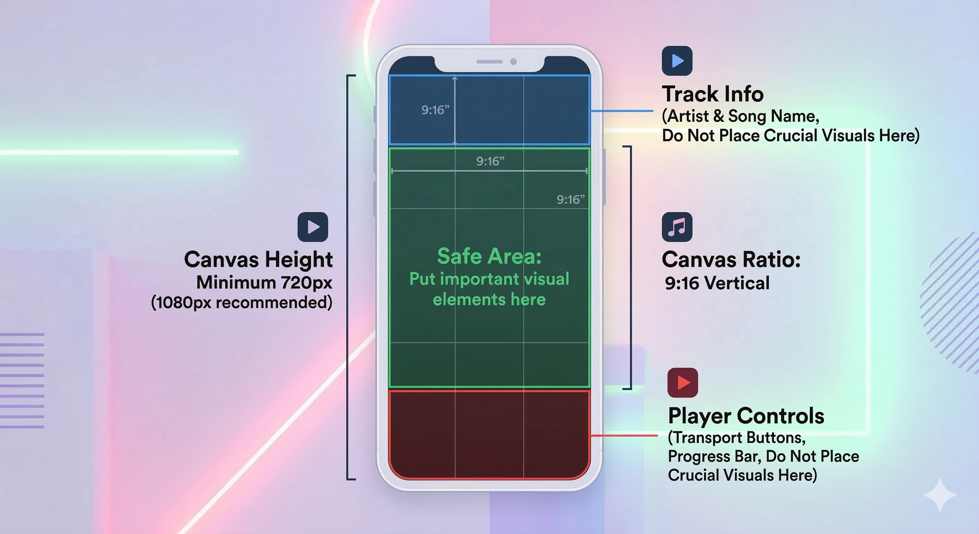 Your artist name, track title, and album are already visible on the screen in the Spotify player overlay. Including them again within the visual makes the screen look cluttered. Let the imagery tell the story.
