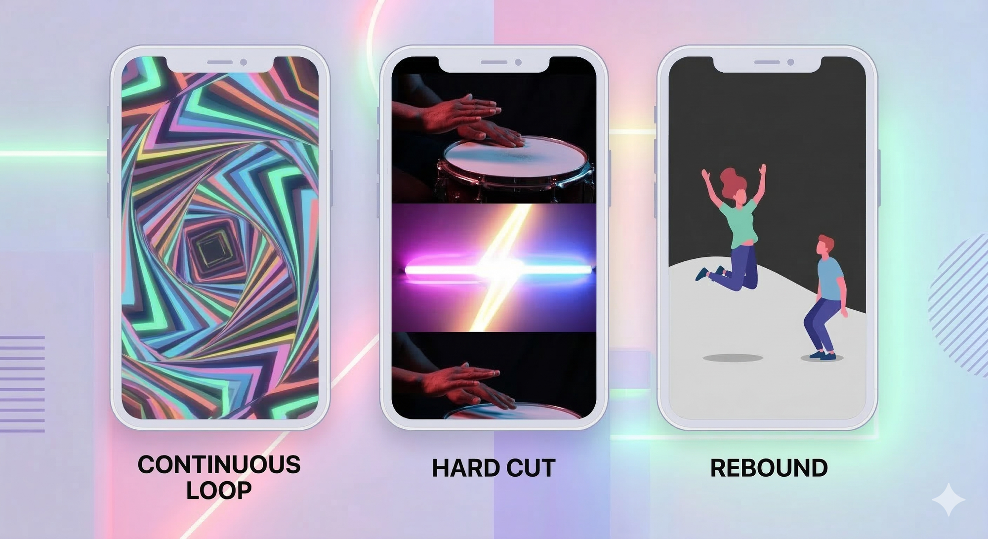 - Hard Cut: A clear, rhythmic cut between the end and the start—great for high-energy tracks.